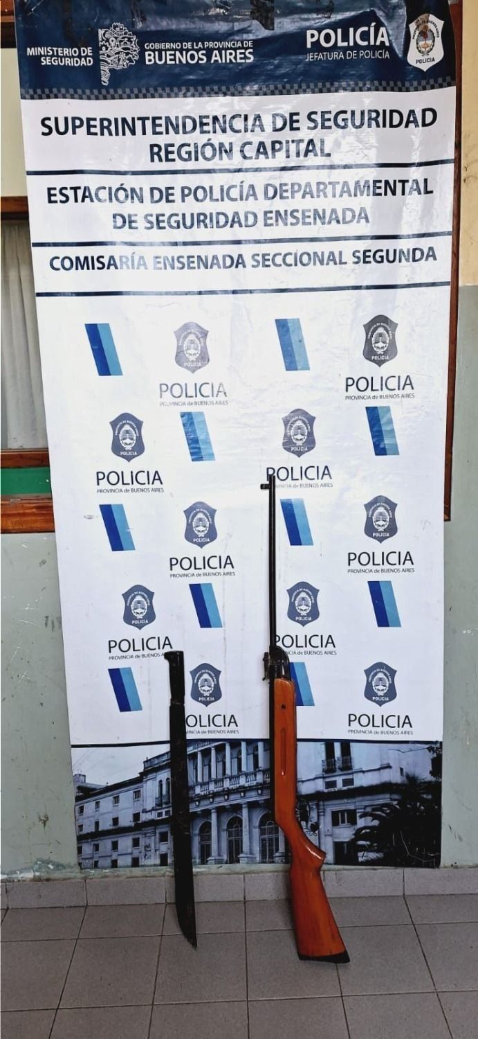 Por otra parte, las autoridades secuestraron un rifle de aire comprimido marca Source Air Gun y un machete de unos 65 centrímetros de longitud, todos elementos que quedaron en poder de la Justicia.