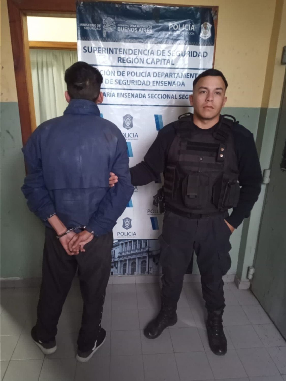 Alertados de la situación, efectivos policiales se hicieron presentes en la escena y detuvieron al implicado, quien posteriormente fue derivado a la comisaría Segunda, donde quedó a disposición de la UFI N° 17 del Departamento Judicial de La Plata por el delito de "lesiones y amenazas".