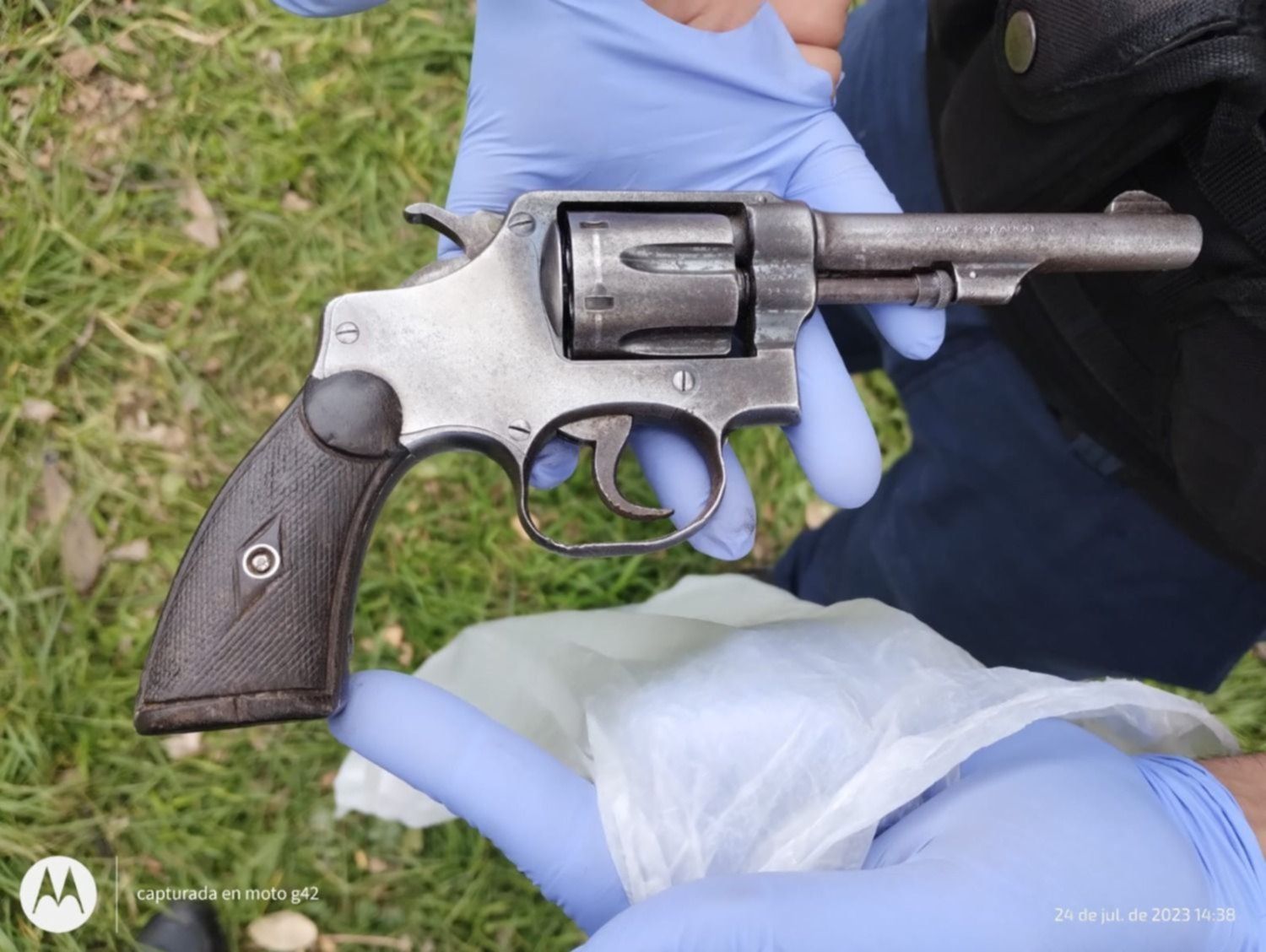 Tal como informé este medio, el sospechoso fue aprehendido en el marco de un operativo realizado en las calles 10 y 78. En poder del sospechoso se secuestró un revólver calibre 32 largo con el número de serie limado y dos municiones en su cargador, un uniforme diario de fajina de la policía bonaerense y un celular.