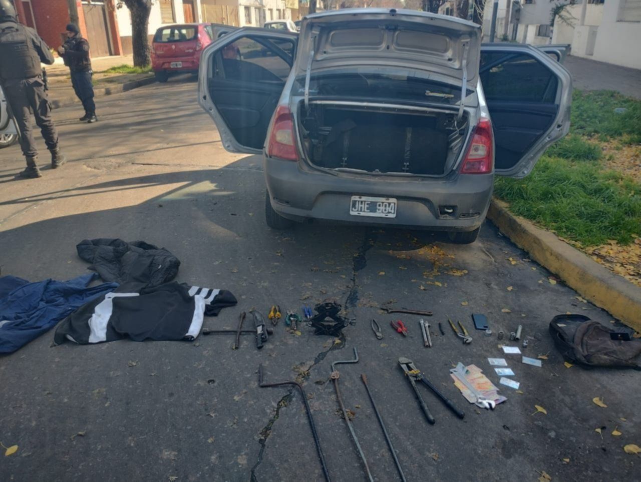 Otros dos sospechosos escaparon corriendo inmediatamente, aunque uno fue capturado en 12 y 36, y el restante en 13 y 38. Al requisar los vehículos, las autoridades hallaron tres ruedas completas de camioneta Volkswagen y una de un auto rodado 14; herramientas de mano; una tijera corta cadenas; llaves cruz; un cricket; y $3.000.
