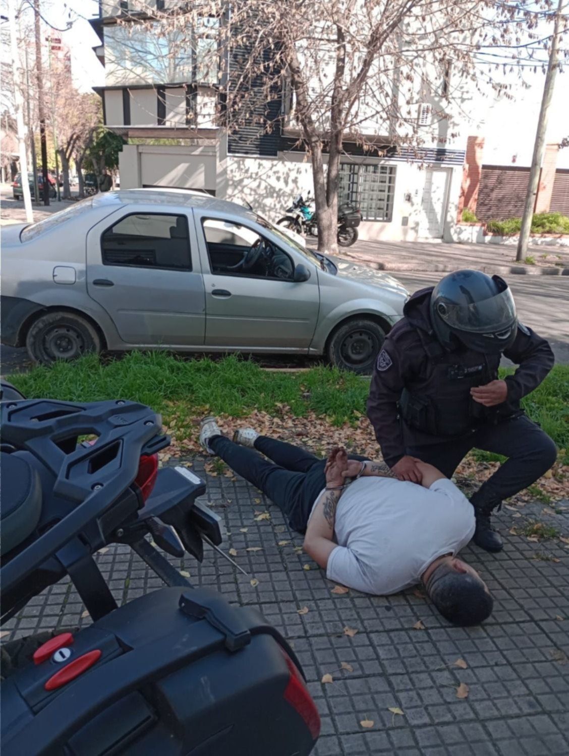 Ante esta situación, motos de la Departamental La Plata, del escuadrón motorizado de Policia Local y móviles del Comando de Patrullas acudieron a la escena y lograron interceptar a los sospechosos. Uno de ellos, inclusive, fue visto mientras intentaba acomodar una rueda de camioneta en el baúl de uno de los autos, por lo que fue rápidamente aprehendido.