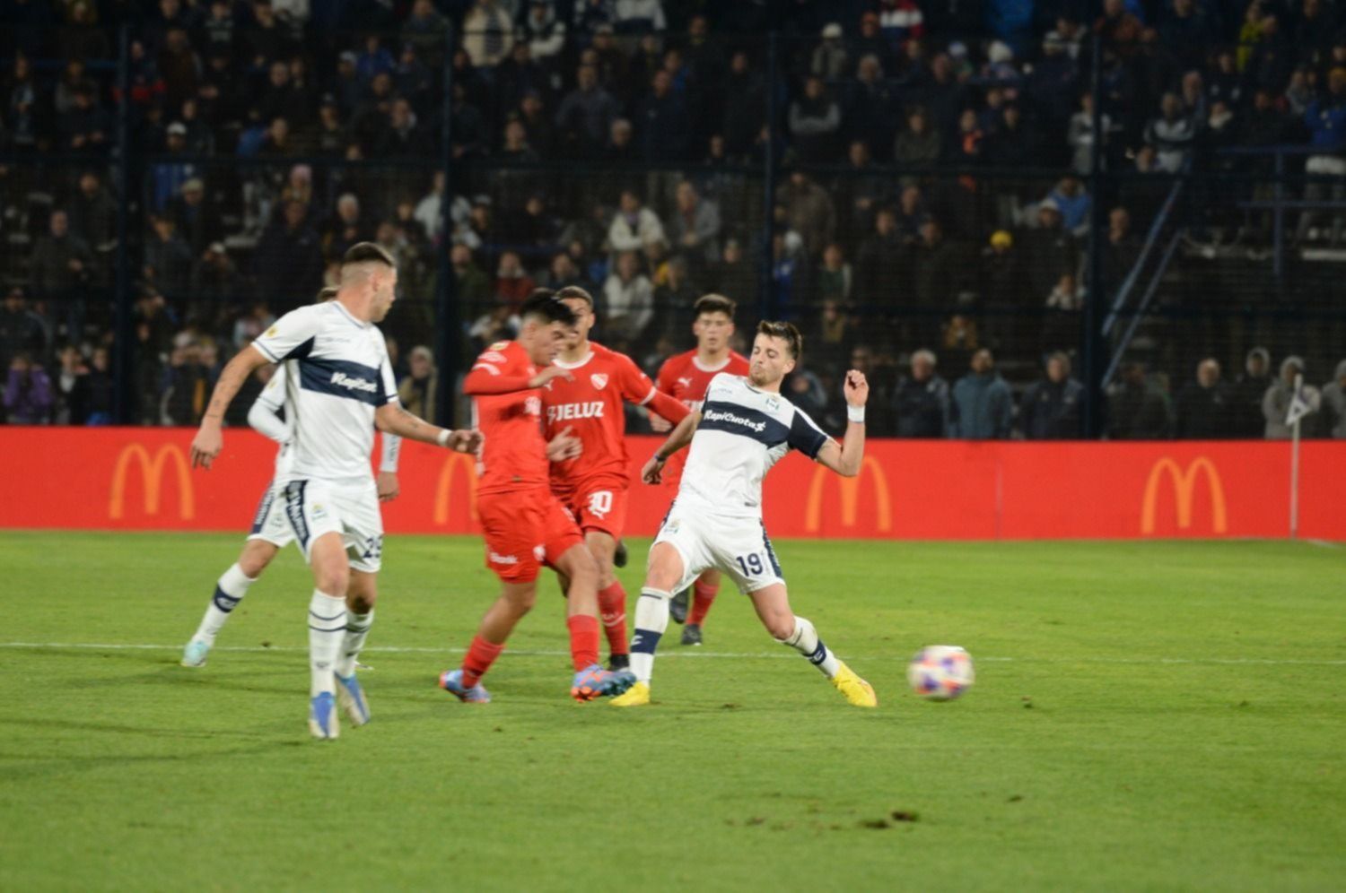 Los primeros veinte minutos de juego fueron parejos, con pocas ocasiones claras y mucho estudio. Independiente tuvo algunas aproximaciones sin gran peligro, mientras que Gimnasia contó con dos jugadas a pelota detenida. A los 29 llegó la primera jugada de gol, aunque fue de manera involuntaria: un tiro de esquina del Rojo se cerró de tal manera que obligó a Tomás Durso a intervenir, ya que casi se le mete olímpico. De manera poco ortodoxa el arquero la sacó al córner con el antebrazo.