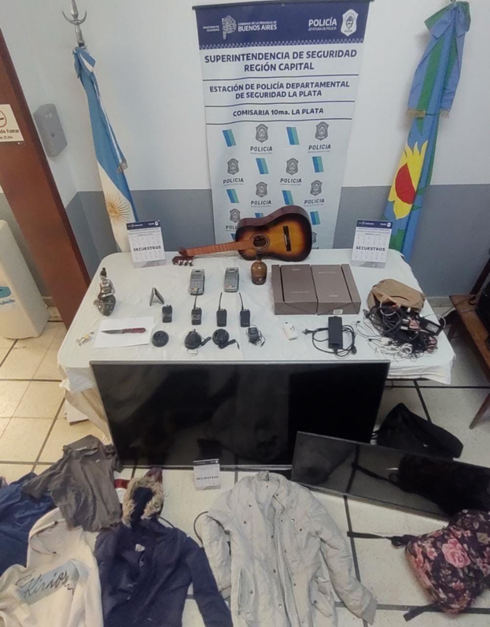 En la primera propiedad atraparon al hombre de 34 años con dos televisores de alta gama y varias prendas que se había robado hace pocas horas. Luego, dieron con los dos hermanos, que viven a menos de diez cuadras del lugar asaltado, donde tenían un cuchillo que fue identificado por la familia damnificada como el mismo que utilizaron "en uno de los robos para amenazar" al dueño de casa. Además, secuestraron handys que utilizaba la banda para comunicarse entre ellos al momento de realizar este tipo de robos.
