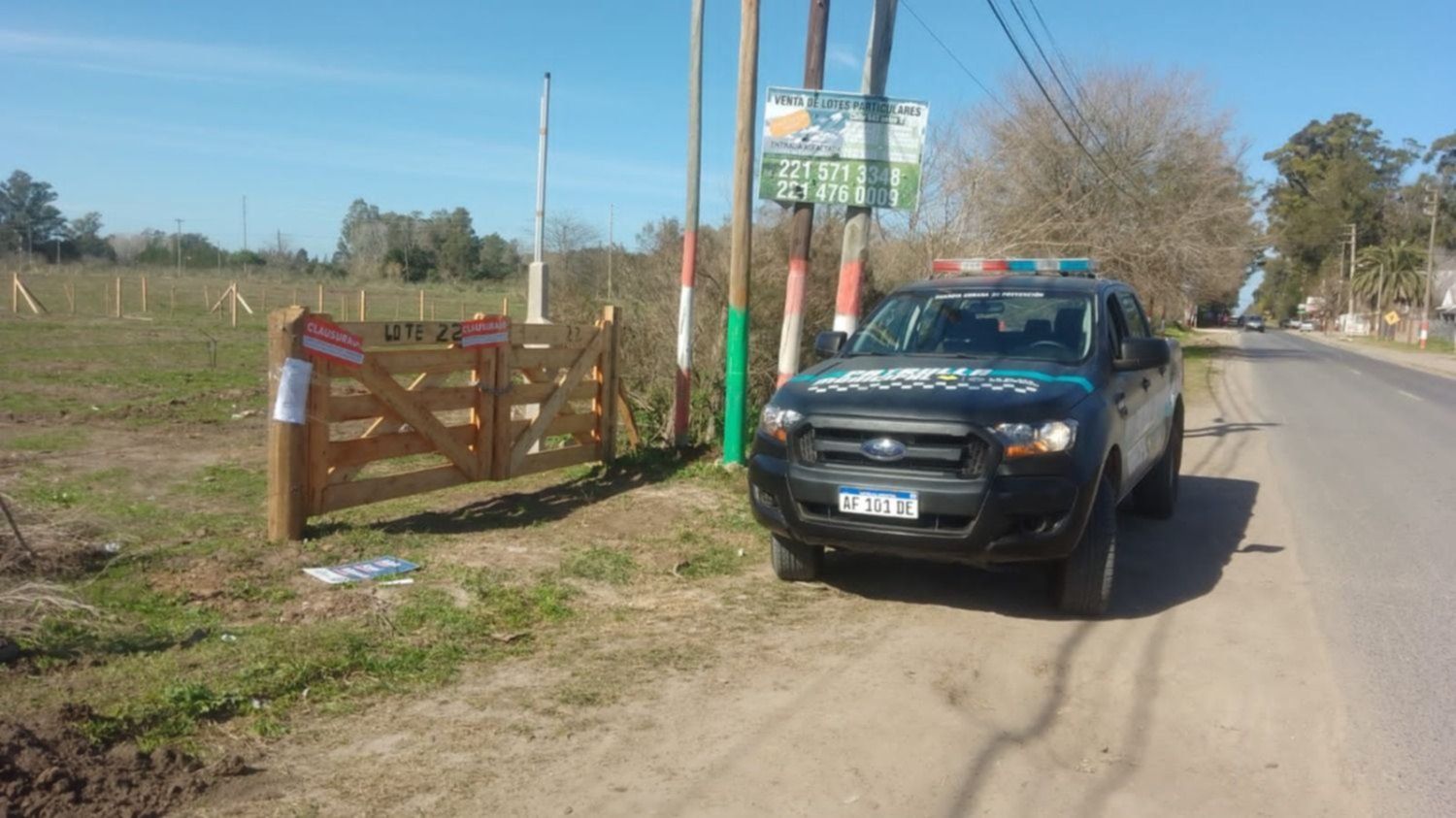 "Allí se estaban iniciando las obras de construcción y loteo, sin la habilitación municipal correspondiente, por lo que se colocaron las fajas de clausura en el ingreso del predio", explicaron.