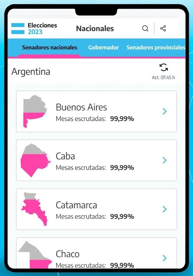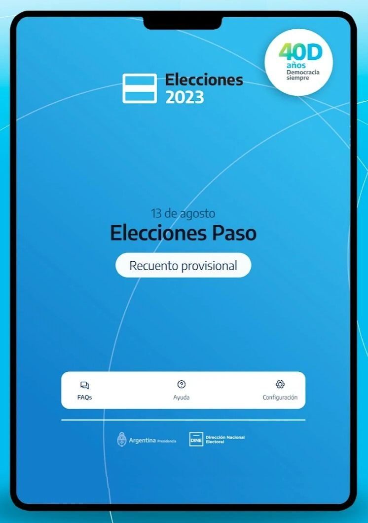La Dirección Nacional Electoral (DINE) presentó la aplicación Elecciones Argentina 2023 para teléfonos celulares, en la que se puede seguir el recuento provisorio de votos de las elecciones primarias abiertas, simultáneas y obligatorias (PASO) de este domingo.