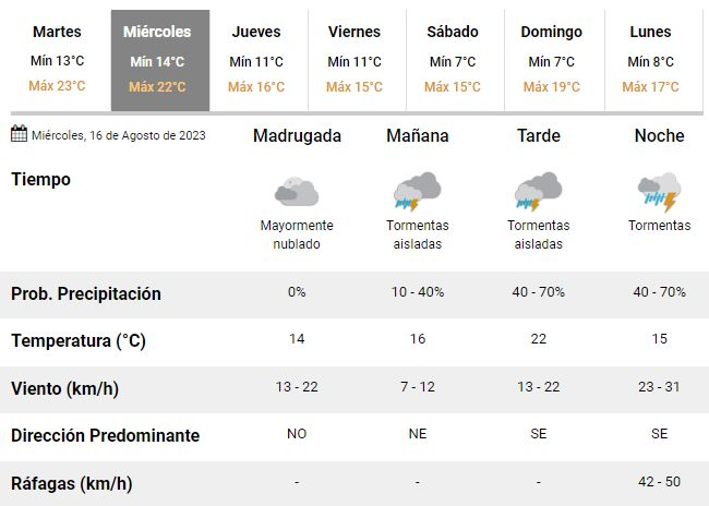 Tristemente se espera además una tónica similar en el inicio del jueves, aunque el tiempo comenzaría a componer a partir del mediodía gracias al ingreso de un nuevo frente de aire algo más fresco desde el este y dará paso finalmente a un viernes de entre 11 y 15°C y ventoso, pero ya sin precipitaciones.