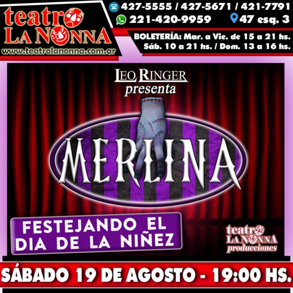A las 19, Merlina: El espectáculo cuenta la historia de un grupo de estudiantes debe desentrañar desapariciones de personajes de una ciudad cercana a la escuela donde los alumnos tienen características especiales, no muy bien vista por el entorno.