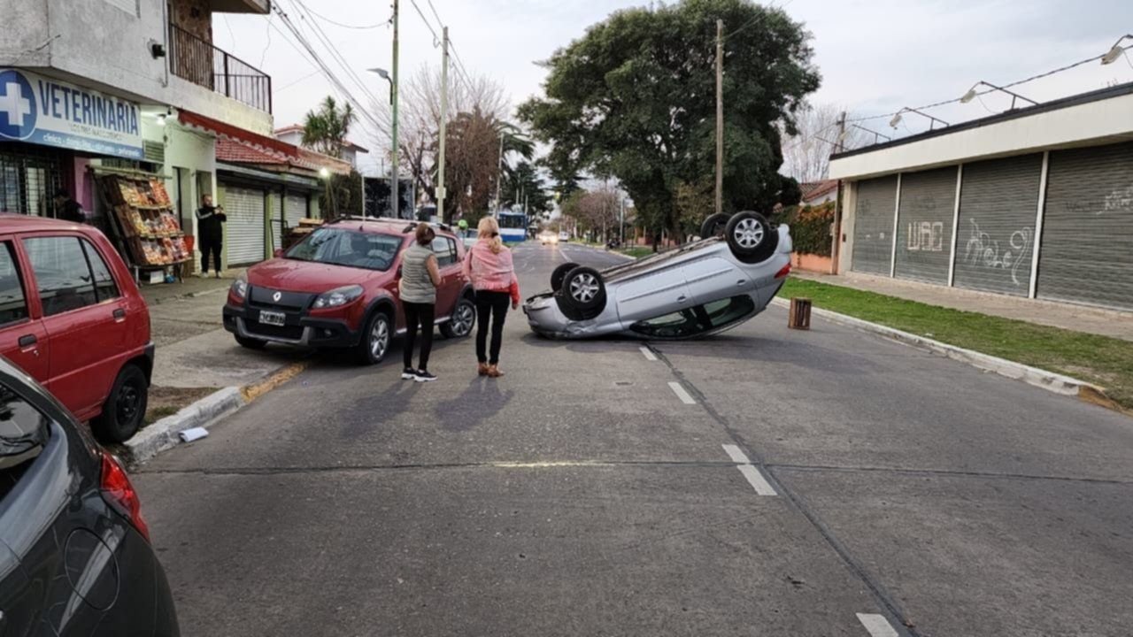 "Una señora venía manejando y se distrajo o algo", contó un testigo a este medio y amplió: "La camioneta roja estaba estacionada, se la iba a chocar, pegó el volantazo y se dio vuelta".