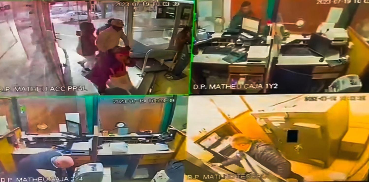 Todo quedó registrado a través de cuatro cámaras de seguridad dispuestas en la entrada de la sucursal, en la zona de cajas y en una oficina donde se encontraba una caja fuerte.