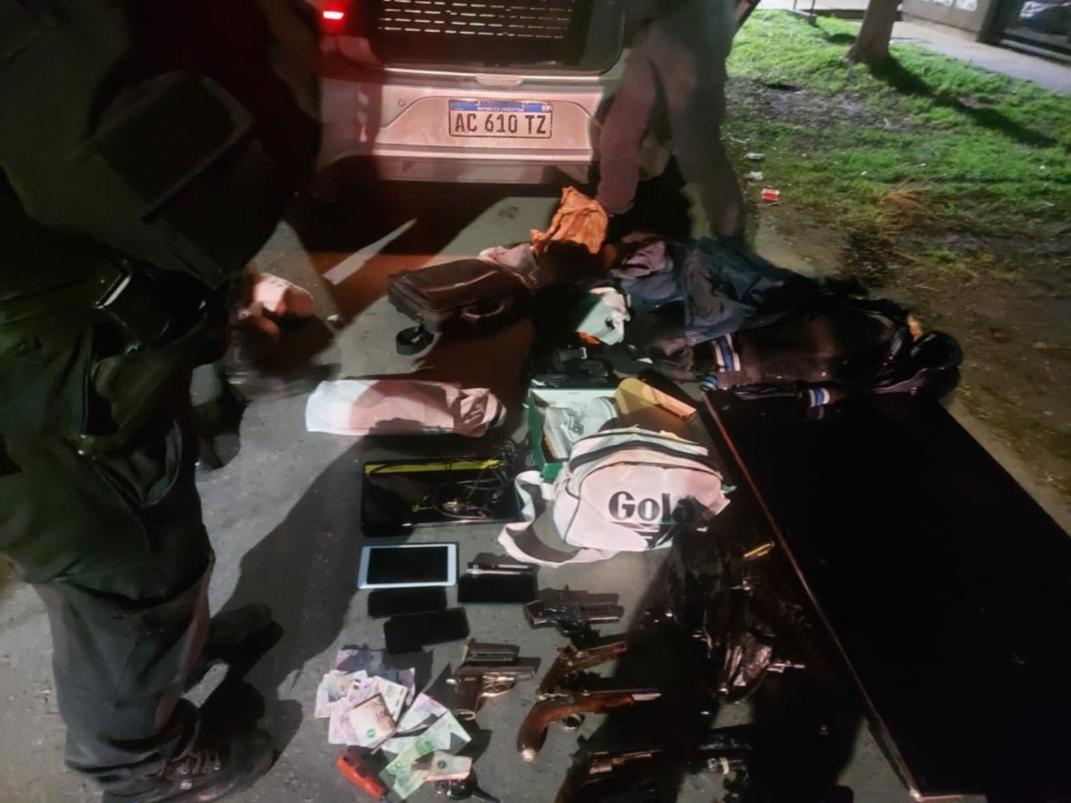 Tras los allanamientos en simultáneo que tuvieron lugar en distintos puntos de la Ciudad Autónoma de Buenos Aires, la Policía de la Ciudad y la Policía Federal secuestraron armas de distintos calibres -que están siendo analizadas a fin de determinar las armas homicidas-, varios de los elementos sustraídos durante los atracos y hasta los vehículos utilizados en los golpes.