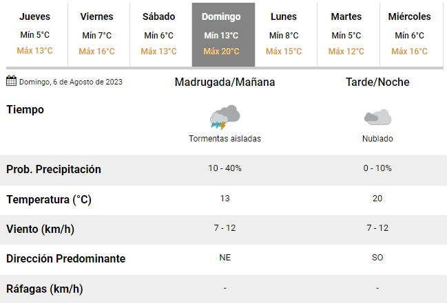 En el inicio de la próxima semana, en tanto, el frío volverá a decir presente, con mínimas de entre 5 y 8°C y máximas que alcanzarían picos de hasta 16°C, ya sin la amenaza de precipitaciones en el horizonte.