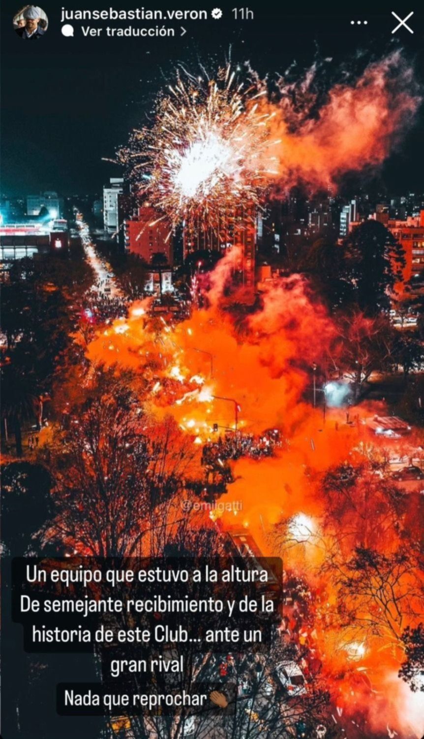 Con la derrota todavía haciendo eco, Juan Sebastián Verón, uno de los máximos ídolos del club, también dejó un mensaje con el que reconoció el esfuerzo de los futbolistas que ganaron el partido. pero perdieron en los tiros desde el punto penal tras realizar once disparos al arco y que cuatro de ellos pegaran en los palos, frente a un Timao que pateó solo una vez en dirección a Mariano Andújar.