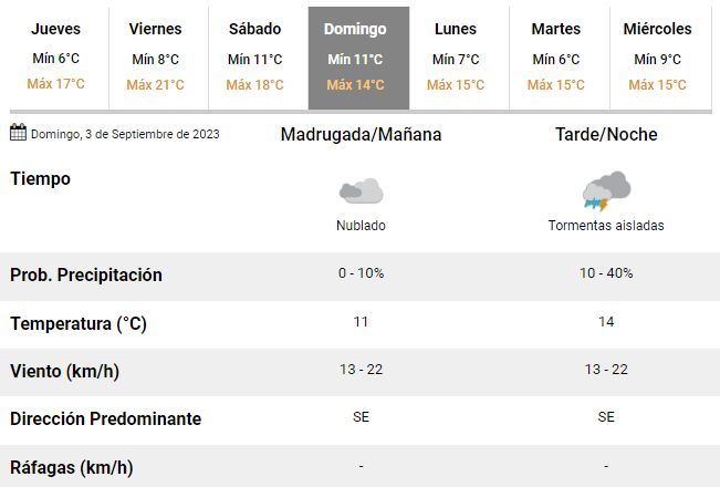 El SMN pronostica muy buenas condiciones climáticas y prevé que el anteúltimo día de esta semana transcurra con soleado, con una humedad de entre el 70 y 75% y vientos leves rotando del sudoeste al noreste, lo que ayudará a elevar las temperaturas en el próximos días pero también traerá consigo una creciente inestabilidad.
