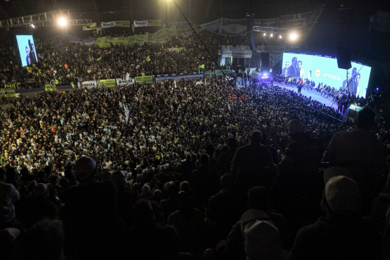 Fue en un acto organizado por la la CGT en el estadio DirecTV Arena de la localidad bonaerense de Tortuguitas, adonde llegó junto a su compañero de fórmula, Agustín Rossi, y el ministro del Interior y precandidato a senador nacional bonaerense, Eduardo "Wado" De Pedro, jefe de campaña de UxP.