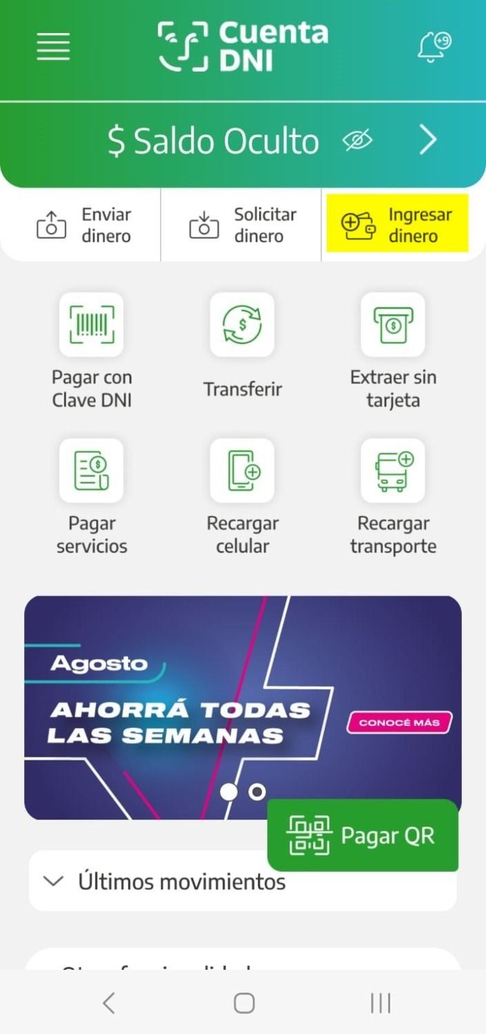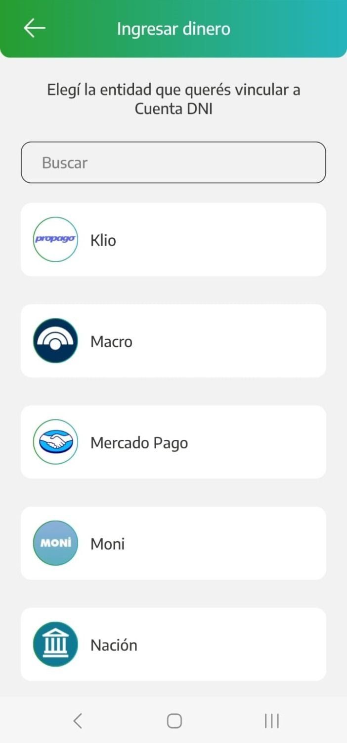 Para eso, es necesario registrar por única vez la entidad bancaria o billetera virtual desde la cual se quiere ingresar dinero a la Cuenta DNI, mediante pocos pasos.