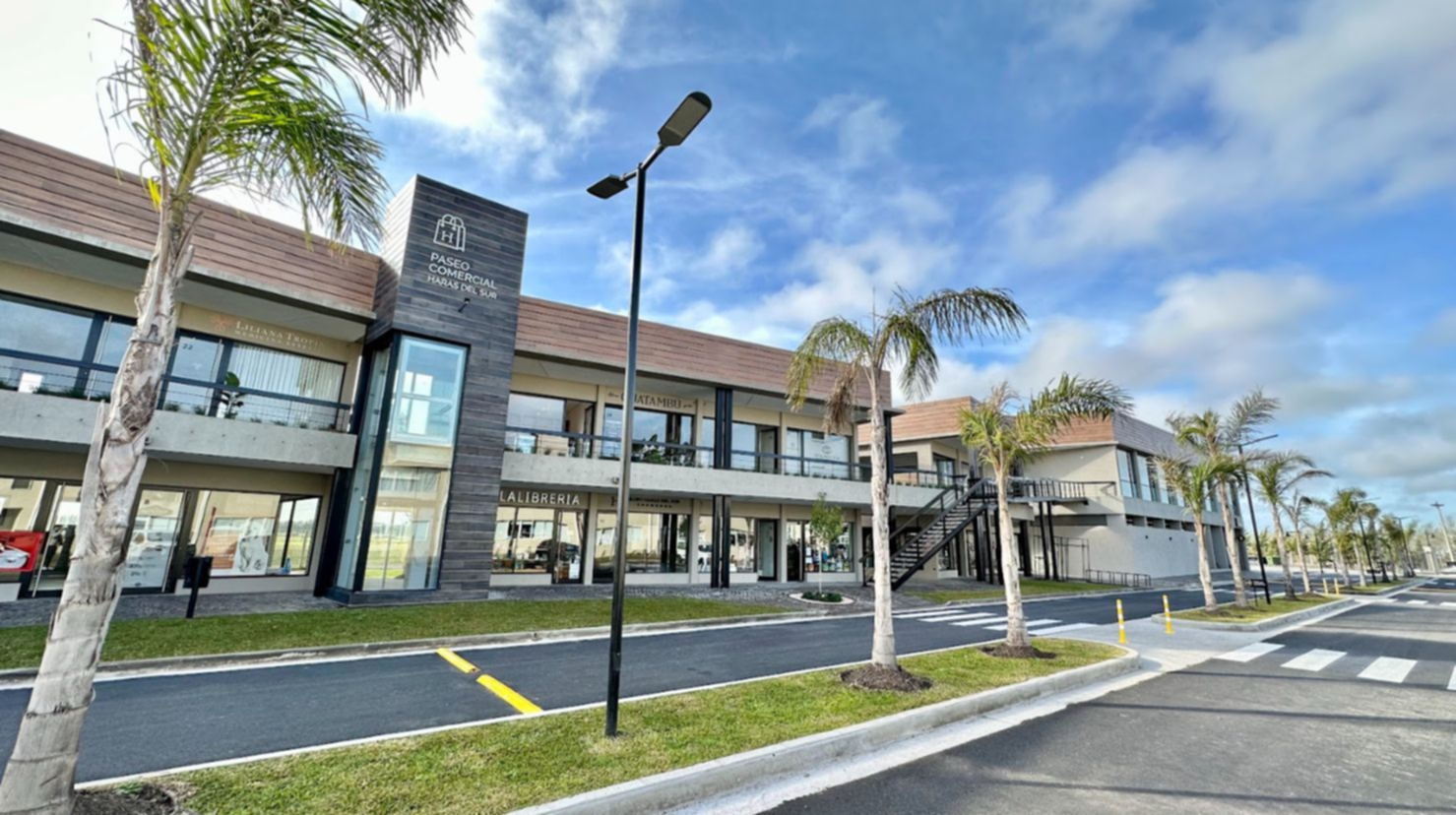 El complejo comercial está compuesto por cinco bloques distribuidos en dos plantas, conectados a través de una pasarela peatonal semicubierta que permite el acceso a ambos niveles sin perder la conexión con la naturaleza circundante. Ubicado en un terreno de aproximadamente 3,000 m² con vistas al Haras del Sur College, un colegio innovador que ya brinda educación a más de 300 estudiantes en los niveles de inicial, primaria y secundaria.