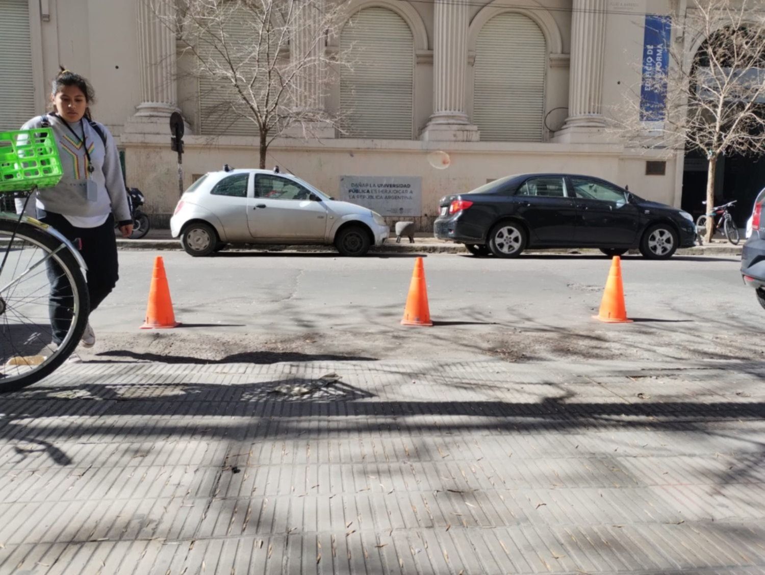 48 entre 6 y 7, frente al Centro del Posgrado Sergio Karakachoff de la UNLP, donde tres conitos cerraban el acceso a un espacio de unos cuatro metros de extensión.