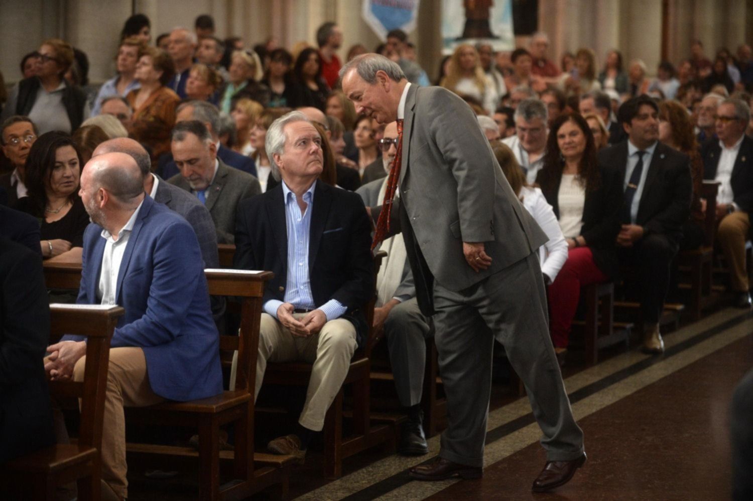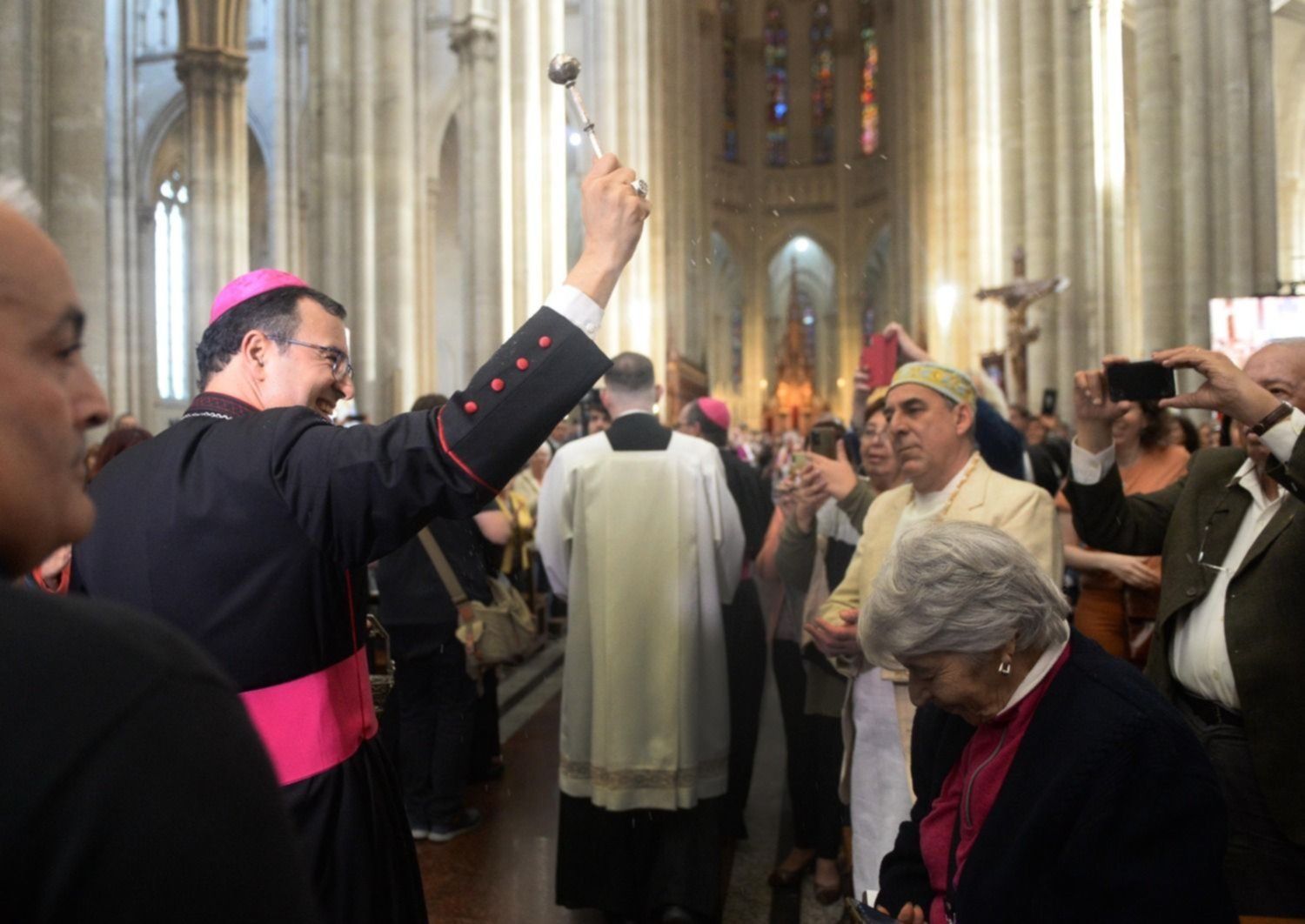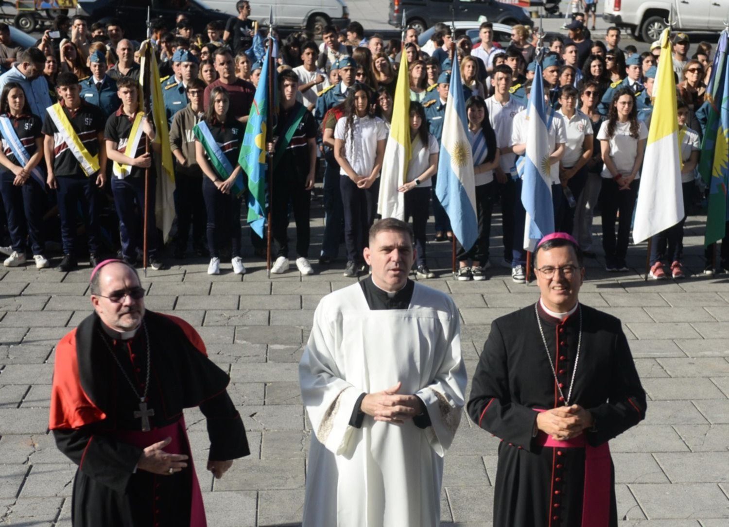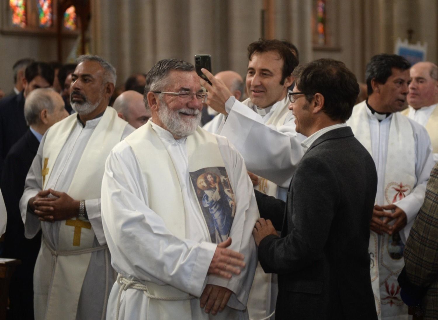 La asunción de Mestre se dio con un marco de público que colmó la nave central del principal templo religioso bonaerense, pero arrancó afuera, sobre la calle 14, cuando el nuevo arzobispo recibió a las autoridades políticas y a los distintos dirigentes que lo acompañaría.
