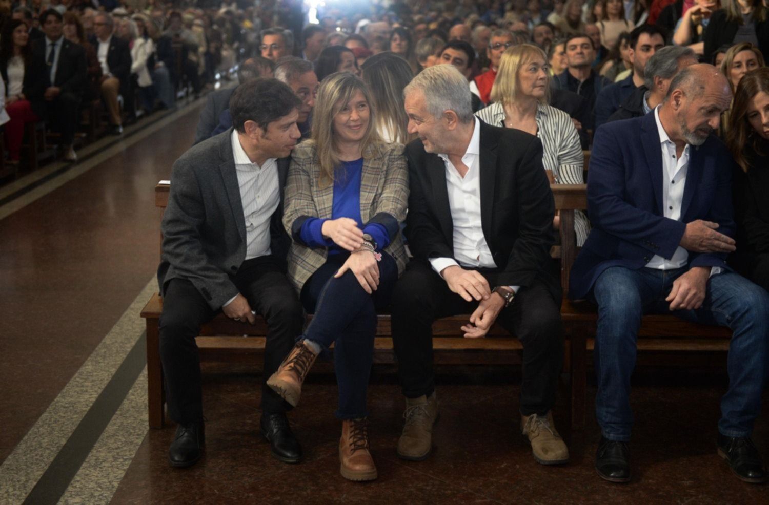 Entre ellos estuvieron el gobernador Axel Kicillof, el intendente de La Plata Julio Garro, el de Ensenada Mario Secco y el de Berisso Fabián Cagliardi. También el ministro de Justicia y candidato a intendente de Unión por la Patria Julio Alak. Y funcionarios municipales y provinciales que siguieron la larga ceremonia.