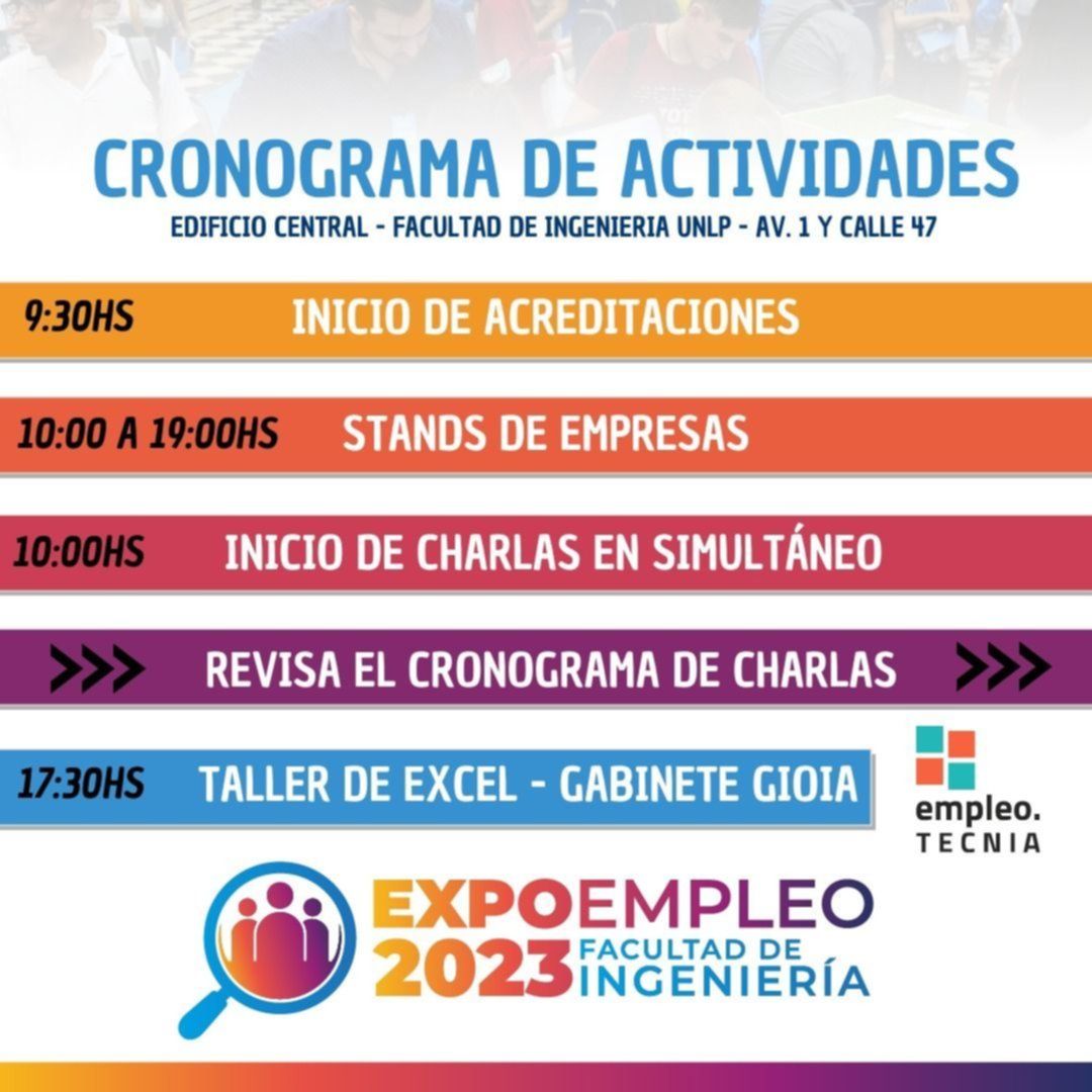 Con el eslogan "Un lugar para descubrir tu futuro", la Prosecretaría de Asuntos Estudiantiles de la Facultad de Ingeniería de la Universidad Nacional de La Plata (UNLP) anunció la realización de la Expo Empleo - Edición 2023. El evento, que tendrá lugar el próximo miércoles 6 de septiembre de 9.30 a 18 en el Edificio Central (avenida 1 y 47), contará con la participación de más de 30 empresas e instituciones.