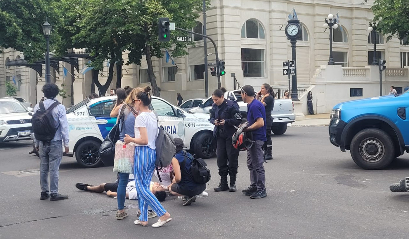 Un fuerte accidente de tránsito generó preocupación este jueves pasado el mediodía en la esquina de 7 y 50, en pleno centro de La Plata, donde un auto embistió a una moto y dejó al motociclista tendido sobre el asfalto. Una ambulancia llegó rápidamente para asistirlo y, en principio, no presentaría lesiones de gravedad.