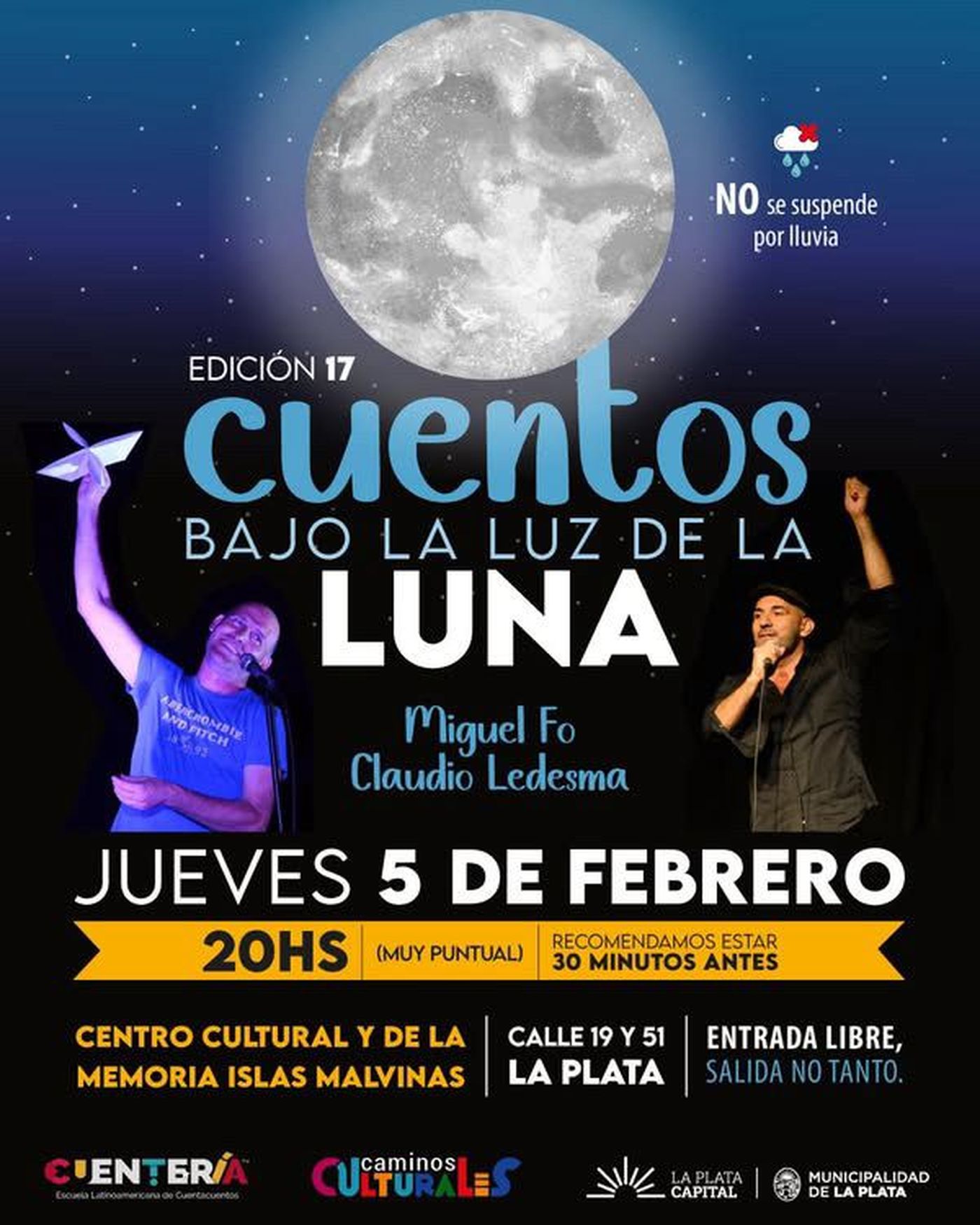El jueves comienzan los primeros festejos por los carnavales en la ciudad, y habrá celebraciones en Lisandro Olmos y El Peligro. El viernes será en Abasto, el sábado, en Melchor Romero, y cerrarán el domingo en Tolosa. También habrá cine móvil en Tolosa, Meridiano V, y otra edición de Cuentos bajo la luz de la luna en el Centro Cultural Islas Malvinas.